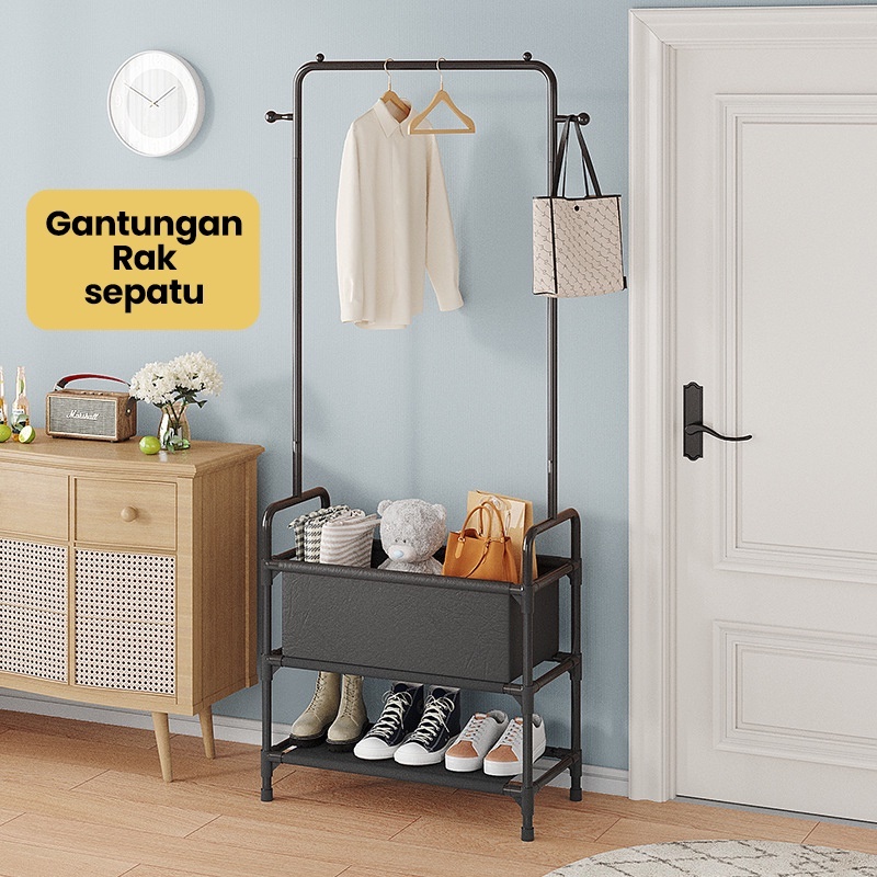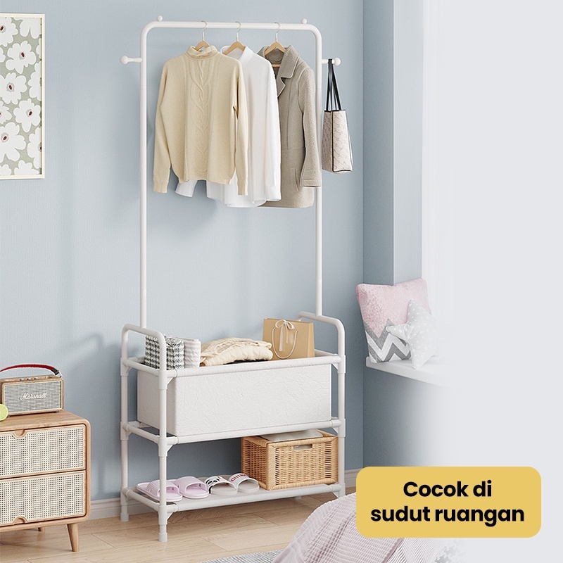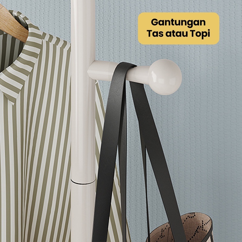 Rak Gantungan Baju Berdiri Dengan 2 Rak Stand Hanger Jemuran Tas/Topi Rak Kamar Mandi