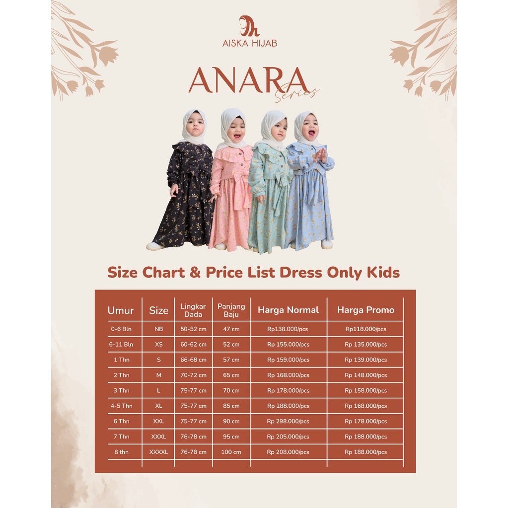 AISKA HIJAB Gamis Couple Anak & Dewasa Anara Series Bahan Rayon Viscose