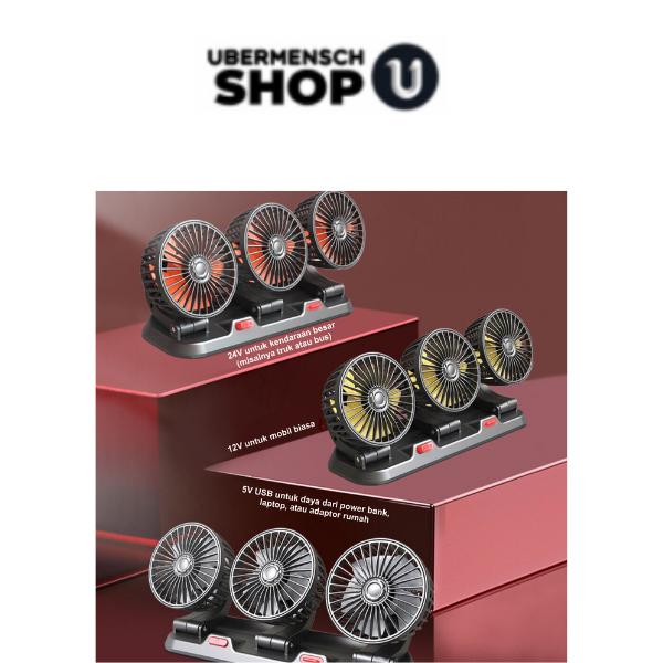 UBERMENSCH SHOP KIPAS ANGIN MOBIL 3 KEPALA 12/24V USB DASHBOARD ROTASI 360 FAN MINI PORTABLE UNTUK MOBIL DC12V/24V 16W MATERIAL PLASTIK 34.5X12X14.5CM - CAR - ORANGE 24V (TRUCK)