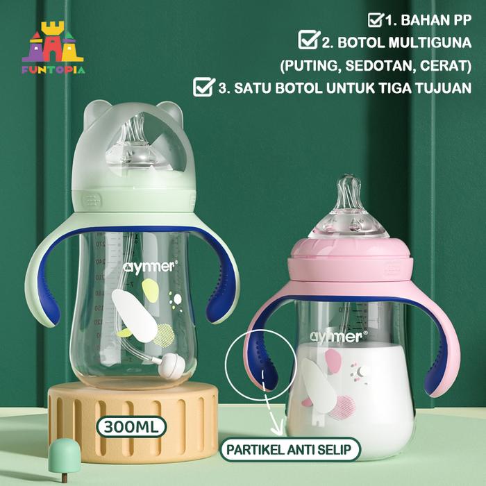 【12.12】FUNTOPIA 3IN1 300ML BOTOL SUSU BAYI ANAK-ANAK SIPPY CUP WARNA HIJAU & PINK DENGAN DOT SILIKON 100 PERSEN BPA FREE & SEDOTAN 360° UNTUK BAYI 6 BULAN + - 3IN1 PINK 300ML