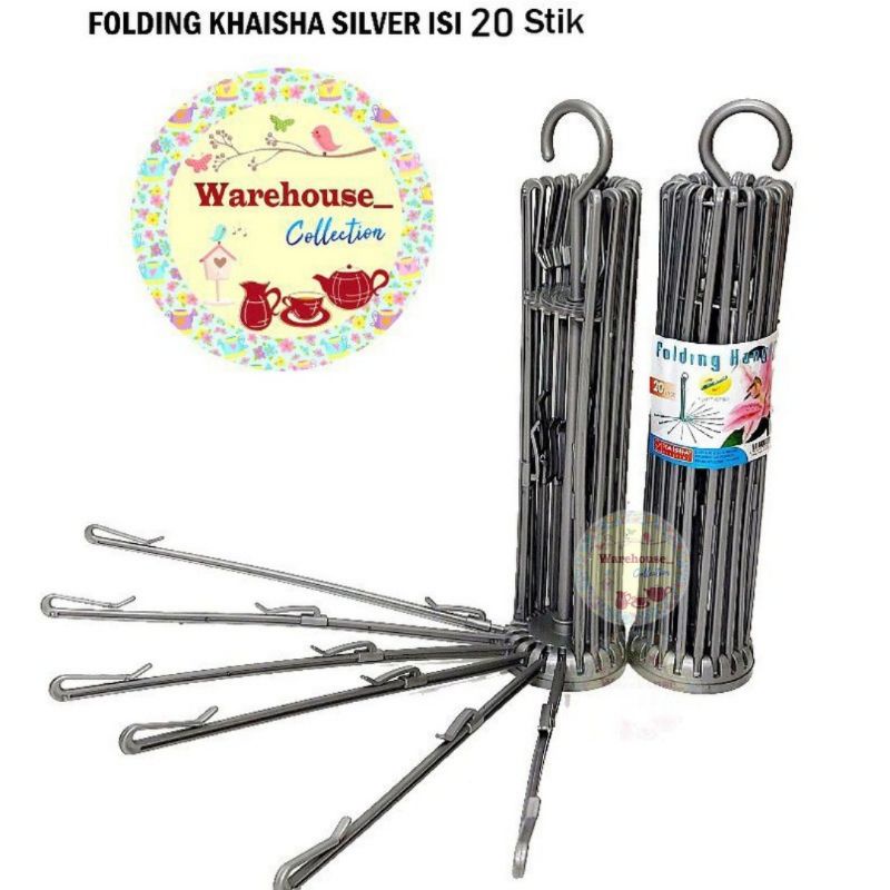 Jemuran gantungan baju anak bayi /Folding penjepit 2 sisi /Hanger Putar 20 Stick khaisha silver