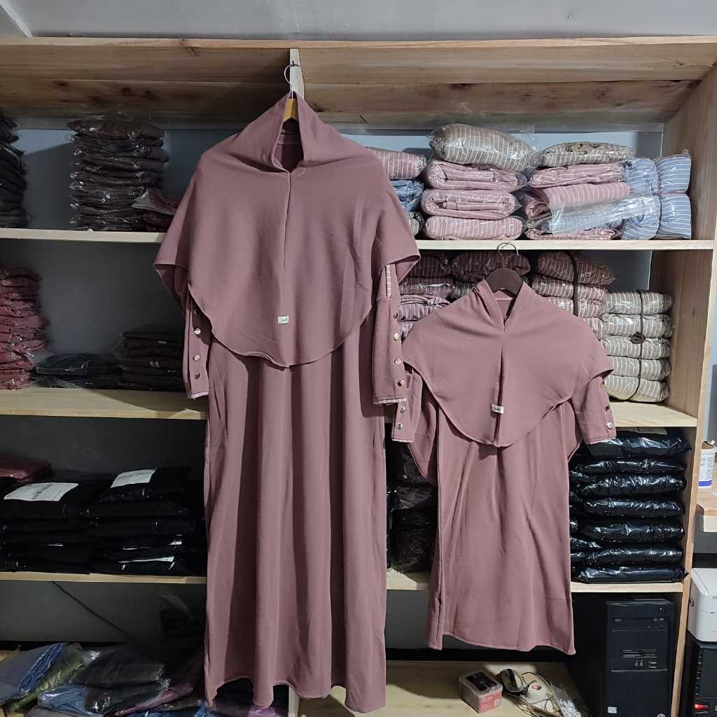 Gamis abaya inara set kerudung bisa couple ibu dan anak perempuan muslimah bahan knit premium terbaru dan terkini tersedia dari anak 2 Tahun sampai 14 Tahun