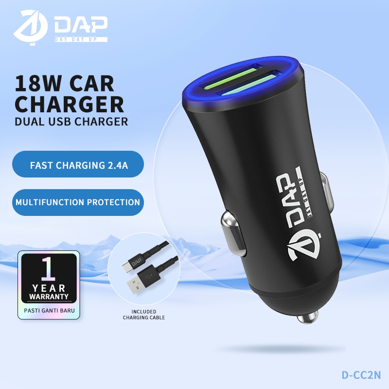 DAP D-CC2N Car Charger PD 18 watt 2.4A Dual Port USB Include Cable USB to Micro - Garansi 1 Tahun