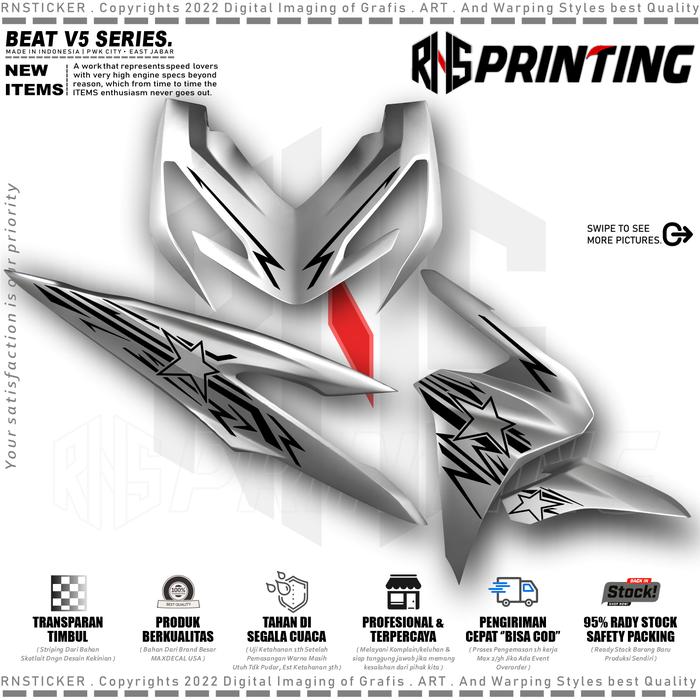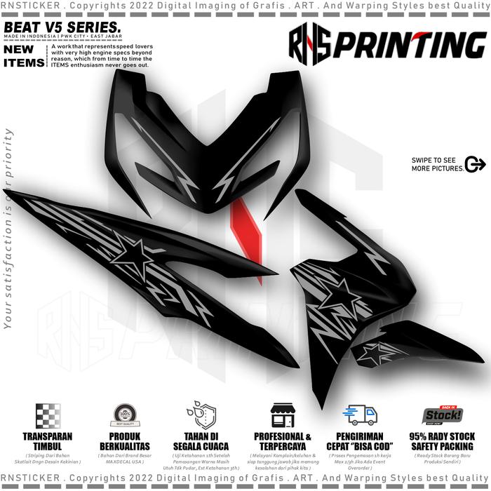 V6 CUTTING STIKER STRIPING VARIASI BEAT NEW TERBARU 2024 BEAT STRET DELUXE BINTANG TRANSPARAN STYLES KENDARAAN MOTOR - HITAM