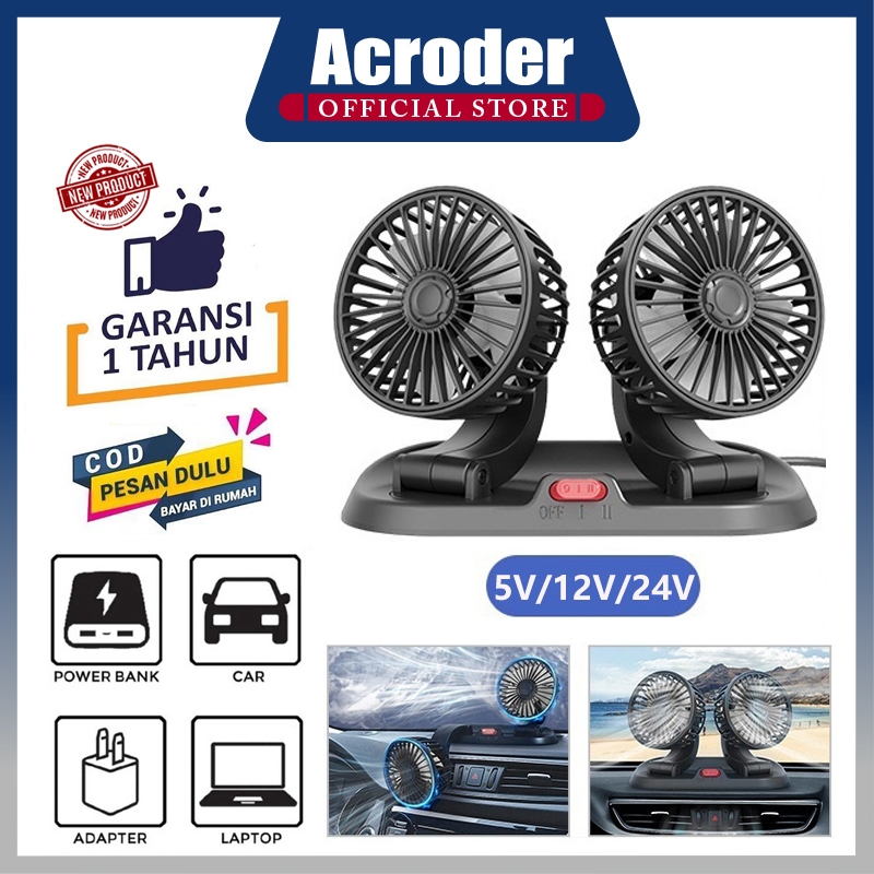 Acroder Kipas Angin Mobil Rotasi Dua Kepala Dengan Daya Tinggi Kebisingan Rendah