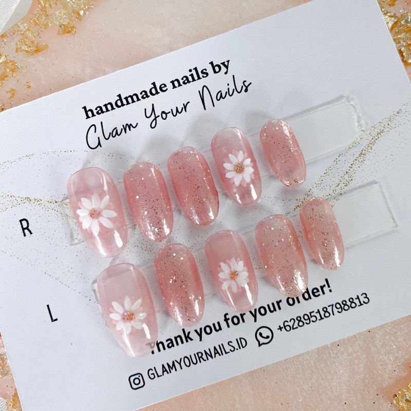 daisy jelly flowers fake nails / press on nails custom