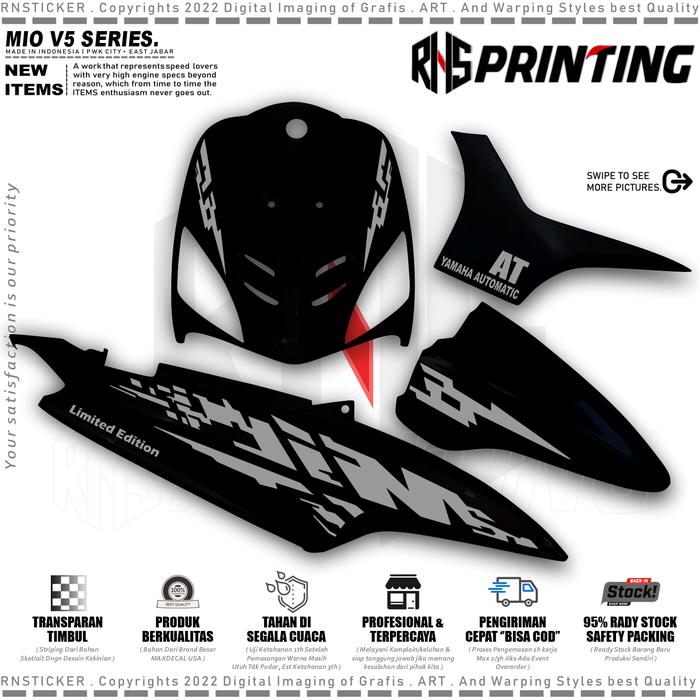 V5 STIKER MIO SMILE STRIPING VARIASI MIO OLD STRIPING TRANSPARAN MIO SMILE SPORTY SIMPLE STYLE MOTOR MOTORCYCLE - HITAM