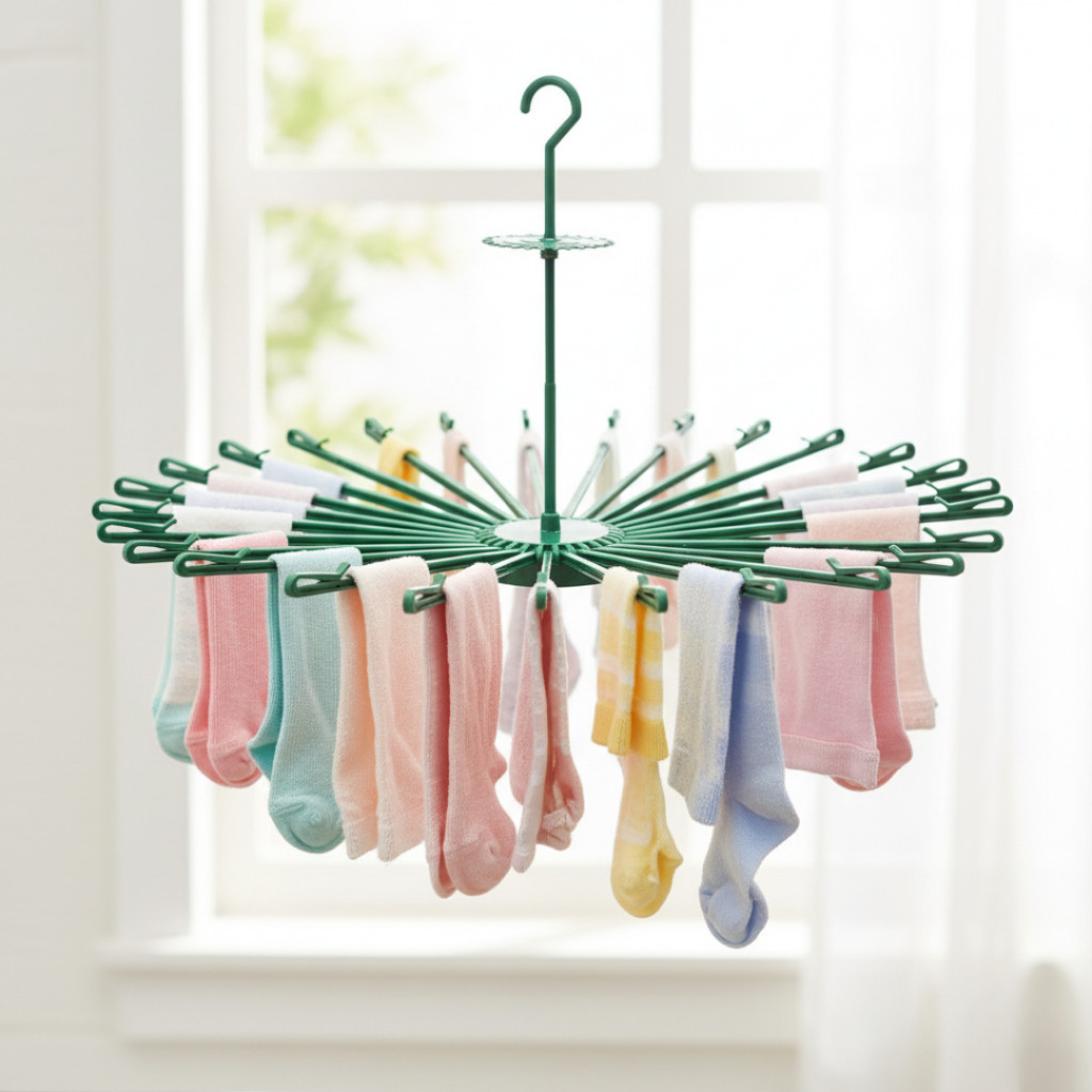 DP Gantungan Jemuran Lipat 30 Stik Jemuran Baju Bayi Kaos Kaki 30 Stick Folding Hanger Gantungan Baju Putar Bahan Plastik