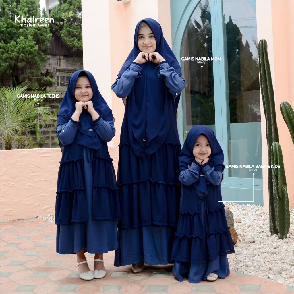 KHAIREEN Gamis Couple Mom and Kids Gamis Nabila Navy