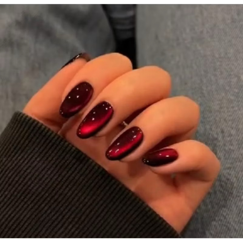 Cat Eye Press On Nails Super Premium Free Set Toolkit, Kuku Palsu Nail Art + Lem, Fake Nails Nude Korean Aesthetic