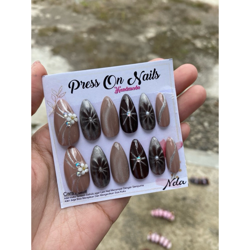 Nail art / kuku palsu cat eye cantik handmade free lem jel