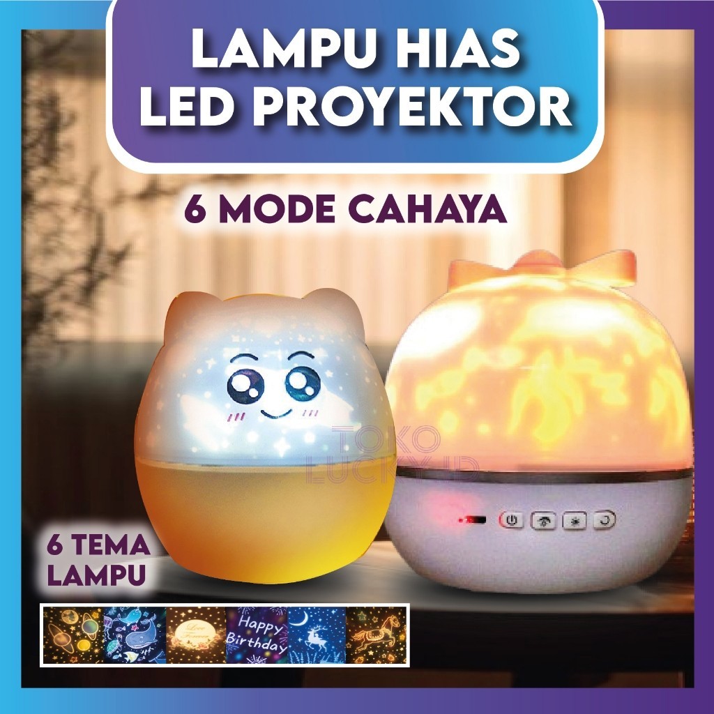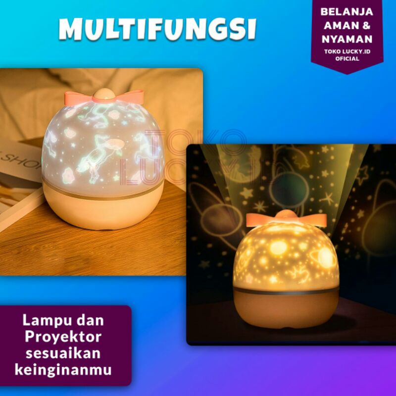 Lampu Tidur Proyektor Aesthetic Rotating 360° Karakter Lucu Nightlamp Hias Malam