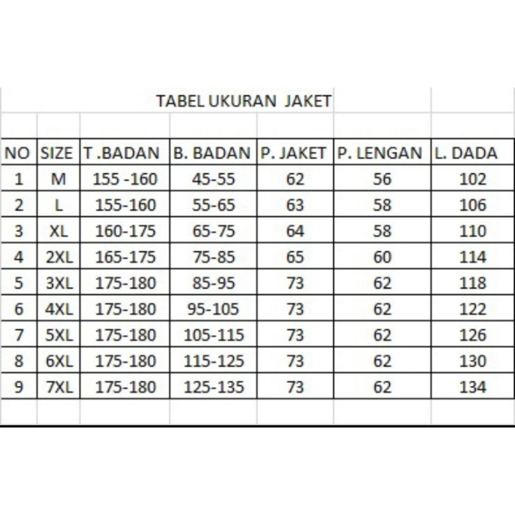 M, L, XL, XXL, XXXL, XXXXL, XXXXXL, XXXXXXL