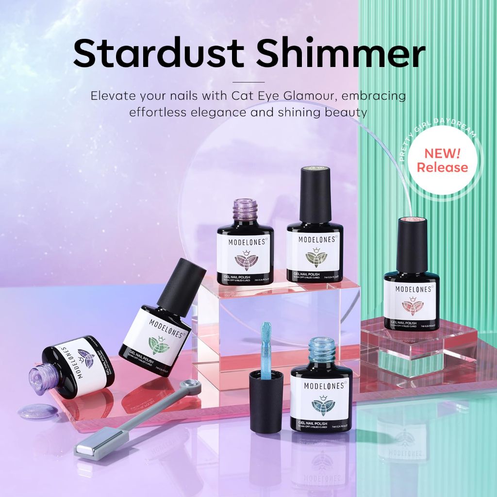 Modelones Cat Eye Gel Nail Polish Set, 6 Colors Magnetic Glitter Kit, Pink Velvet Shimmer Holographic Red Blue green Purple Silver, Home Salon Nail Art, Summer Manicure Gift For Women Girl