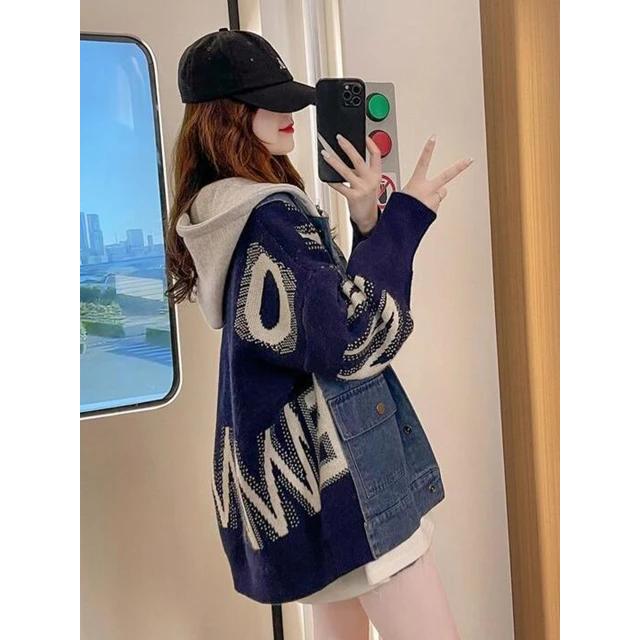 JAKET DENIM ZIGZAG OVERSIZE - JAKET ZIPPER HOODIE GAYA KOREAN - PATCH WORK JAKET