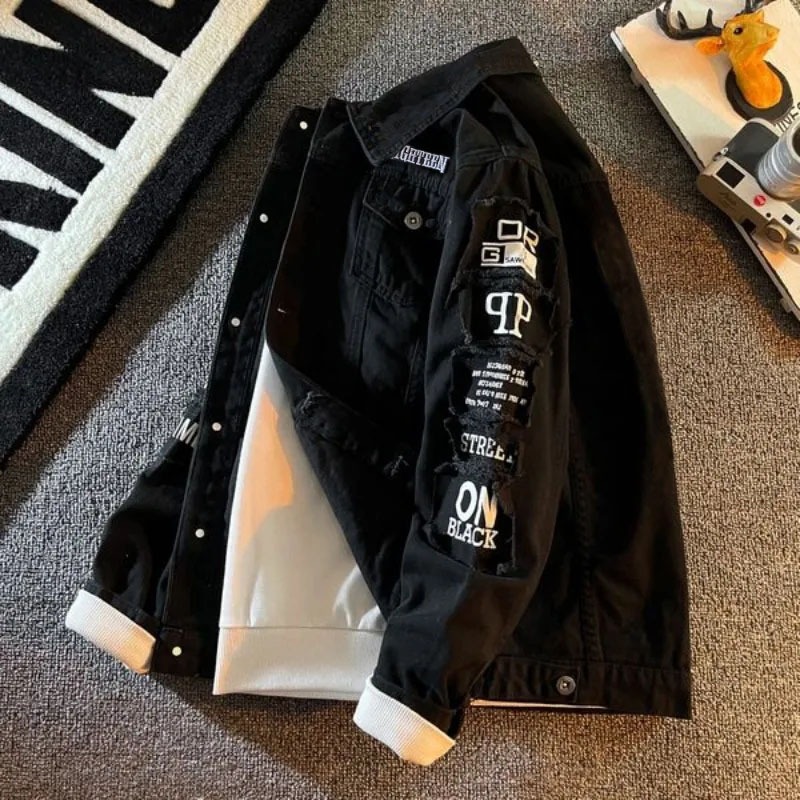 Jaket Jeans Denim Pria Wanita Tebal Bordir SWAG HITAM Putih DISTRO PREMIUM QUALITY M,L,XL,XXL,3XL
