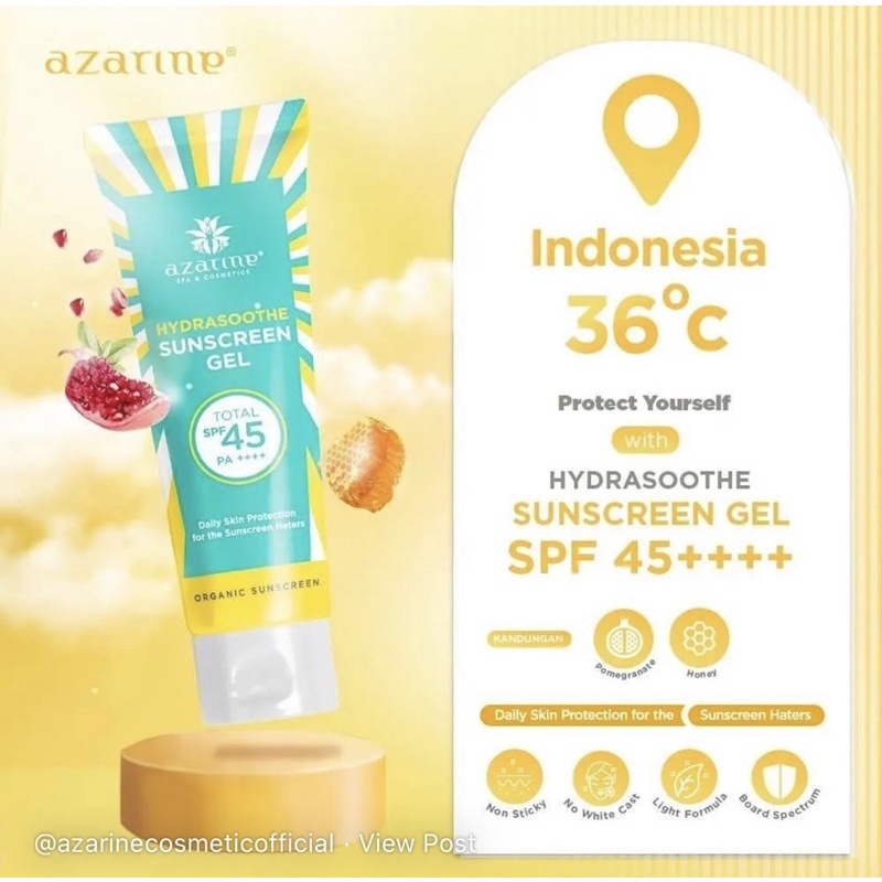 [] AZARINE HYDRASHOOTHE SUNSCREEN GEL SPF45 PA+++ 50ML SUNSCREEN WAJAH AZARINE FUNGAL ACNE SAFE