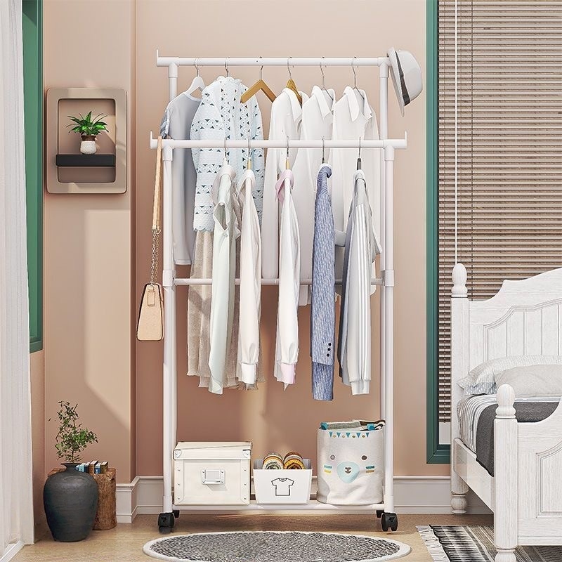 Stand Hanger Double / Rak Gantungan / Jemuran Baju Pakaian Single Roda 4 - Iron Material