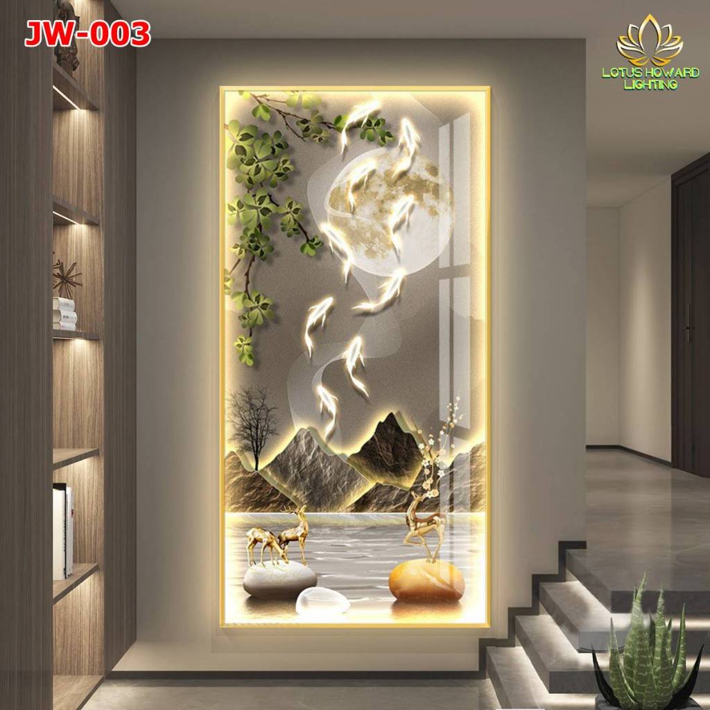PAJANGAN HIASAN DINDING PRINTING LUKISAN 5D KRYSTAL PORSELIN WALLDECOR DENGAN LAMPU LED CAHAYA HANGAT LAMPU HIAS DINDING RUMAH KAMAR TIDUR RUANG TV