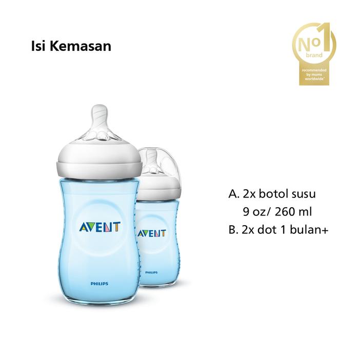 PHILIPS AVENT | BOTOL SUSU BAYI | NATURAL | DOT TIDAK BINGUNG PUTTING | 260 ML | BLUE | SCF695/23 - SCF695/23 2PCS
