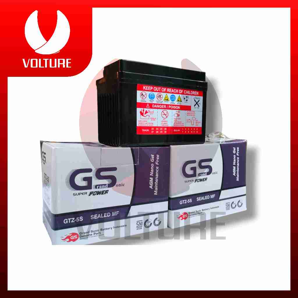 Aki motor kering GS MF GTZ5S garansi 3 bulan 12v 5ah Beat, Vario 110, Scoopy, Revo, Vixion, dll.