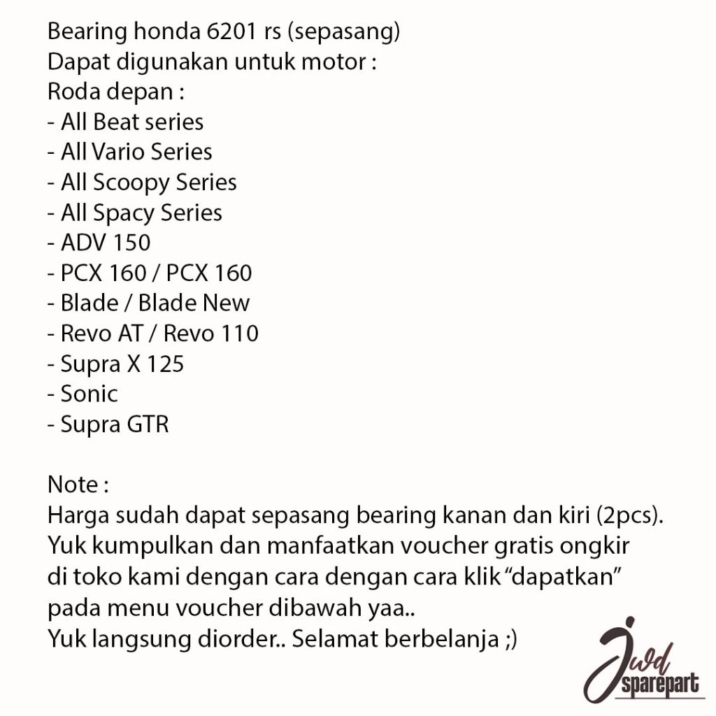 Bearing honda 6201 RS klaher roda depan vario series, beat series, scoopy, blade, revo, supra x 125 SEPASANG / 2PCS
