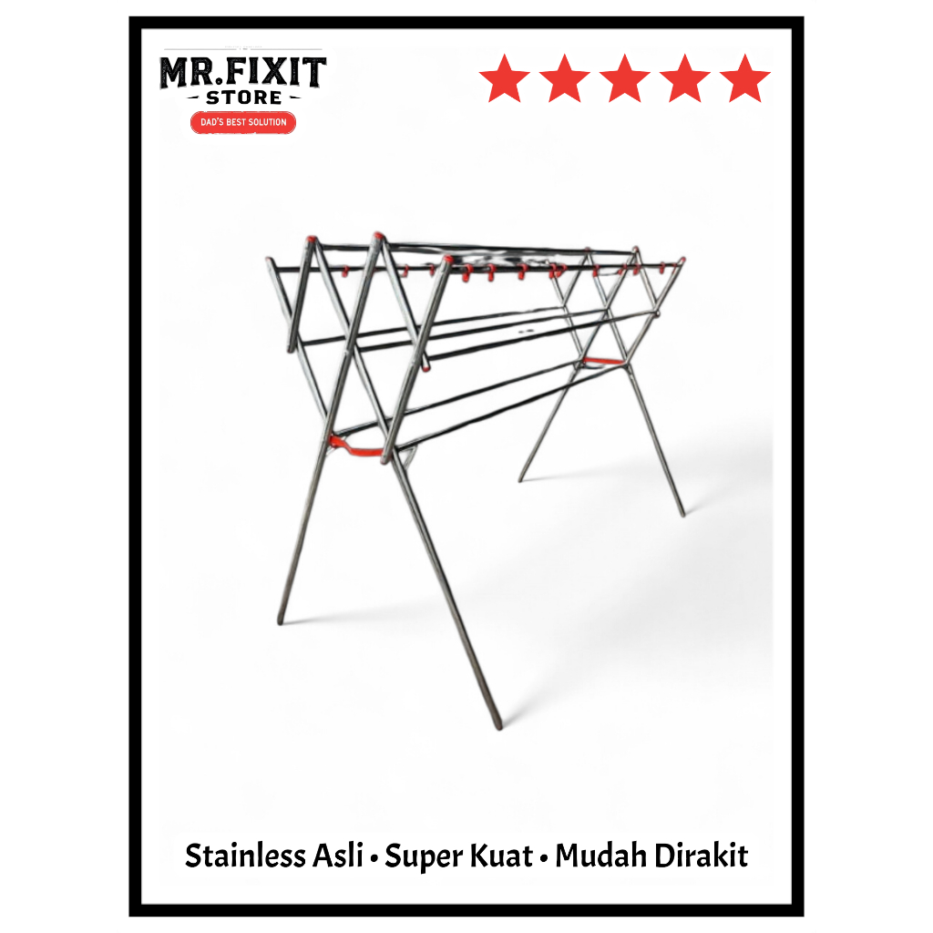 Jemuran Baju Stainless Lipat 9 Palang | Anti Karat • Super Kuat • Muat Banyak • Murah Berkualitas