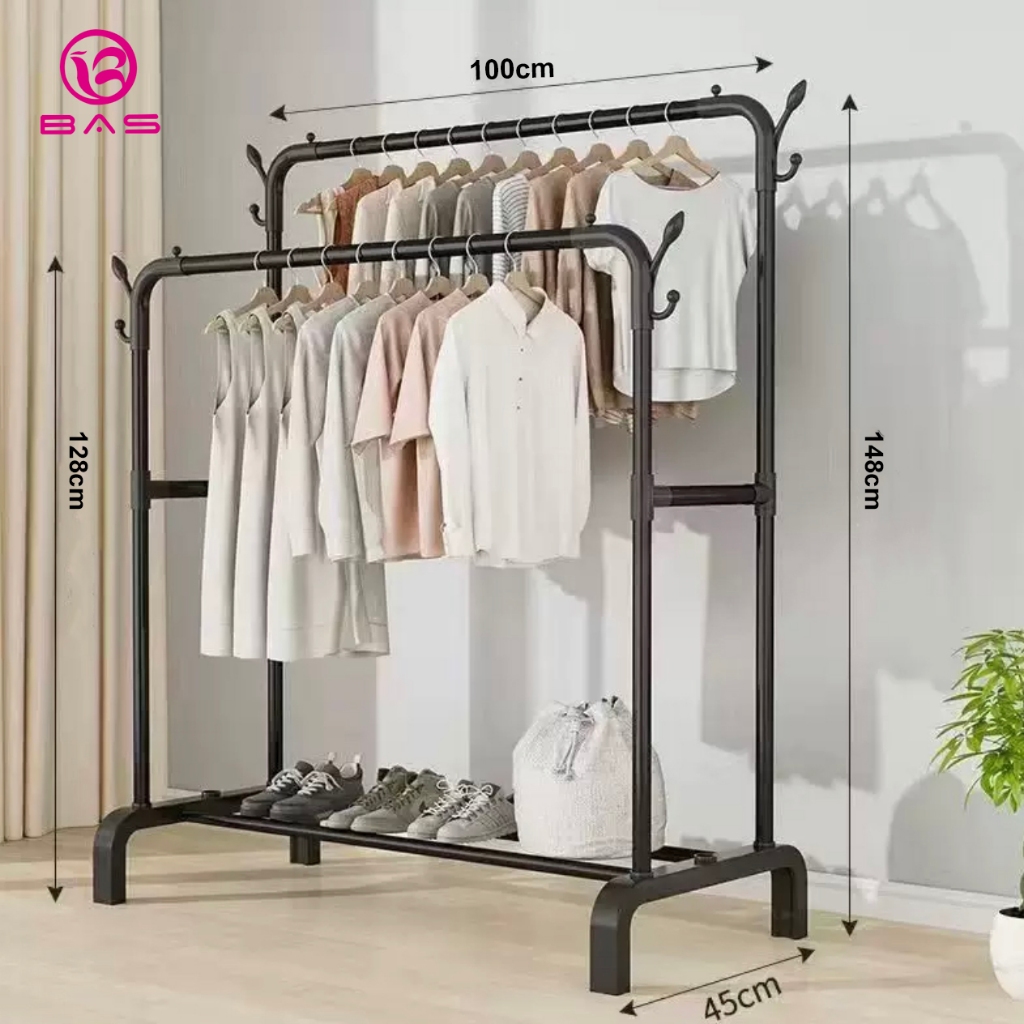 BAS Gantungan baju rak besi rak jemuran portable stand hanger single pakaian rak baju