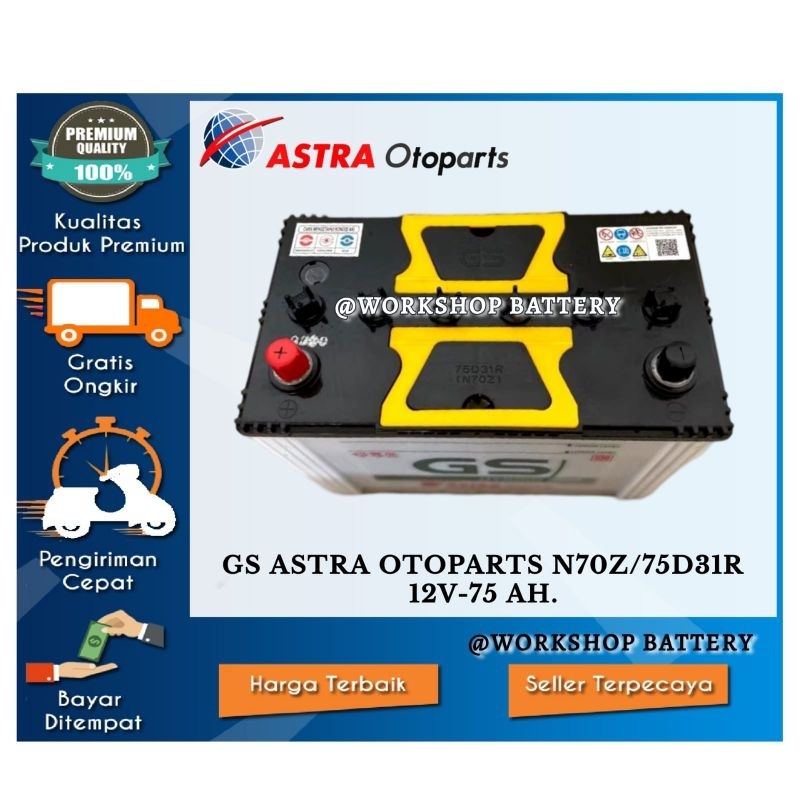 AKI MOBIL FORD EVEREST / RANGER LAMA. GS HYBRID N70Z / 95D31R 12V-75 AH.