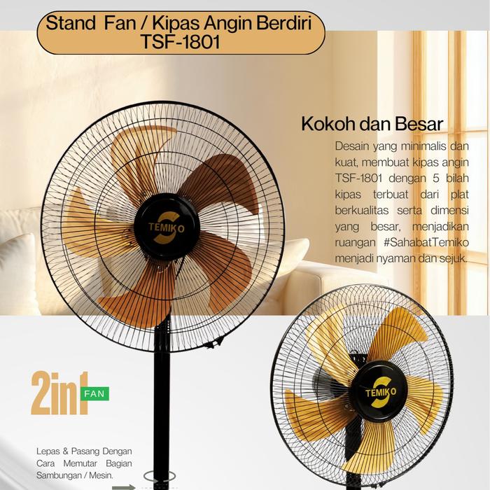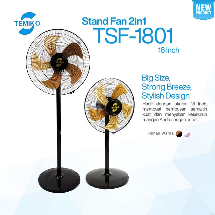 TEMIKO KIPAS ANGIN STAND FAN 18INCH 2IN1 TSF-1801 - LEBIH KUAT DAN LEBIH BESAR - HITAM / g0ldd