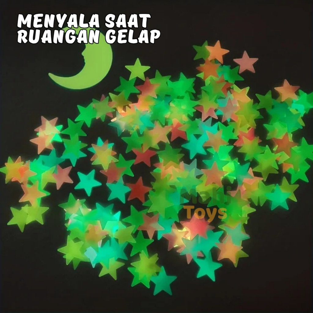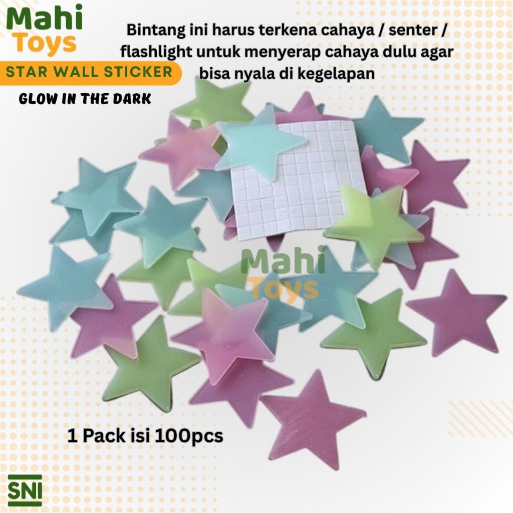 MahiToys Stiker Bintang Glow In The Dark 100pcs Hiasan Dinding dan Plafon Menyala Dalam Gelap
