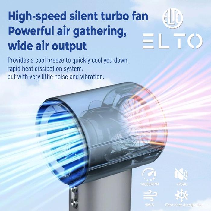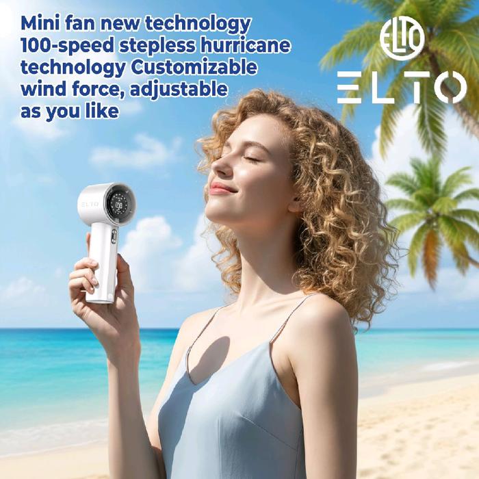 ELTO ET-07 TURBO SPEED PORTABLE FAN 4000MAH KIPAS MINI STRONG WIND TURBO DIGITAL DISPLAY KIPAS TANGAN PENYEJUK SUPER TURBO UNTUK AKTIVITAS OUTDOOR ATAU INDOOR - WHITE
