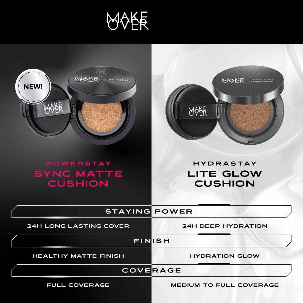 MAKE OVER - POWERSTAY SYNC MATTE CUSHION ( 12 g ) - Cushion Wajah 24H Strongwear Demi-Matte Finish