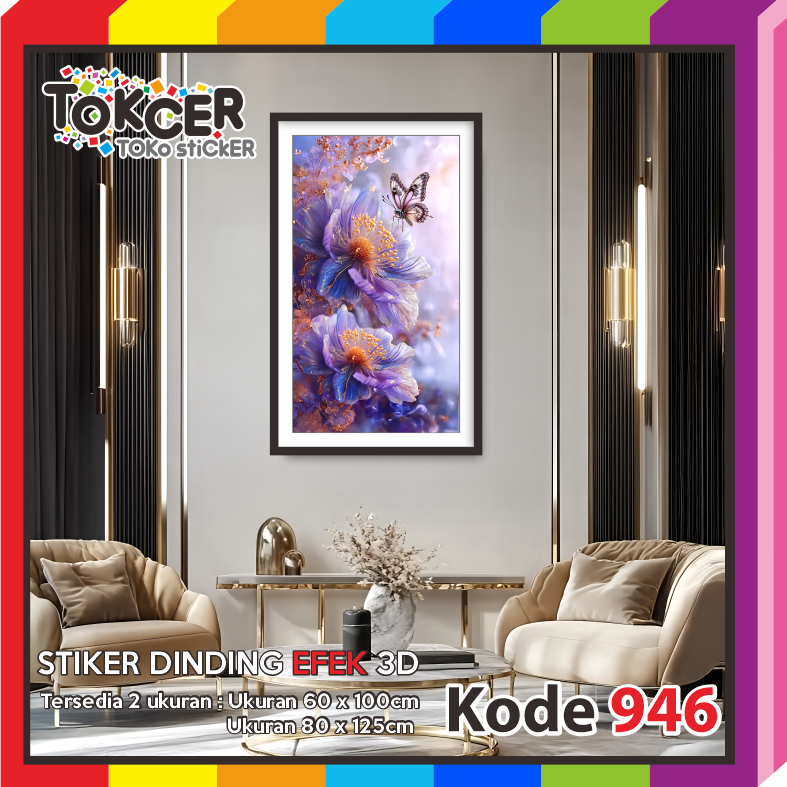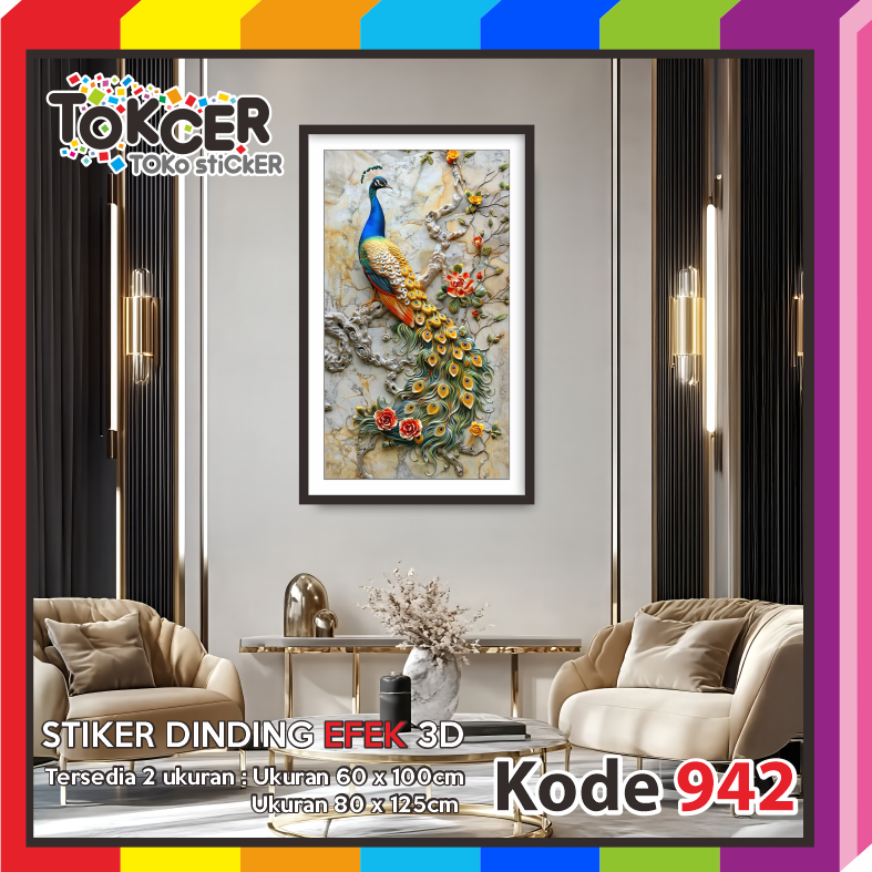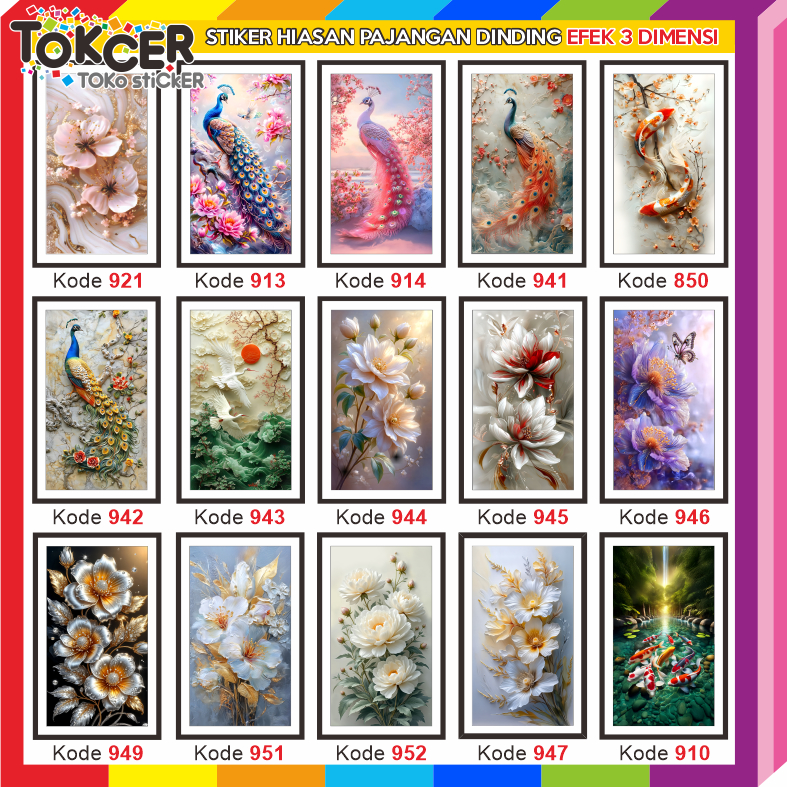 STIKER HIASAN DINDING EFEK 3D Stiker Pajangan Dinding Wallpaper Motif Bunga/Merak/Kupu-kupu