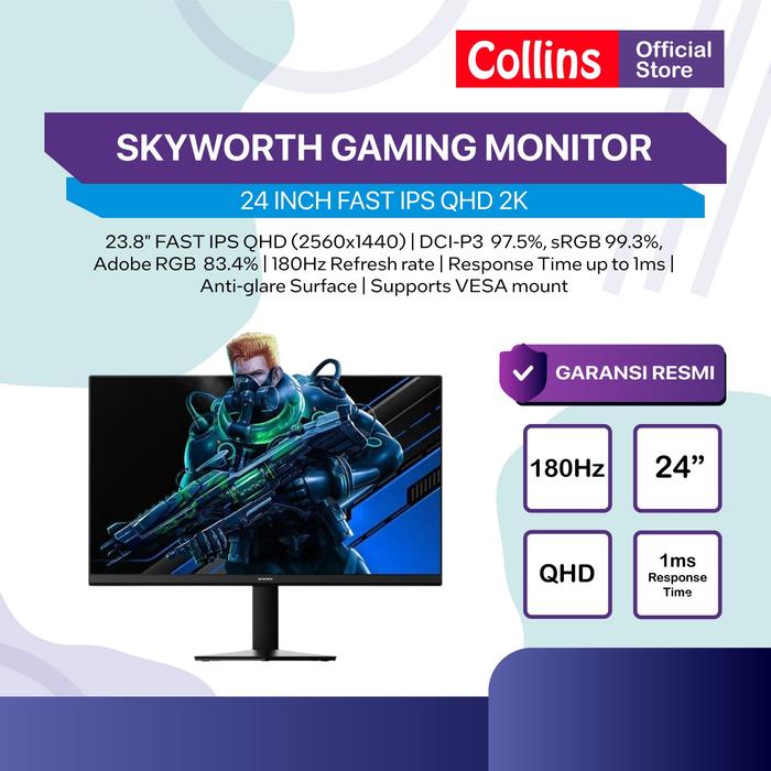 SKYWORTH GAMING MONITOR 24" H24G30Q | 27" H27G30Q FAST IPS QHD 2K 1440P 1MS 180HZ - 24 INCH