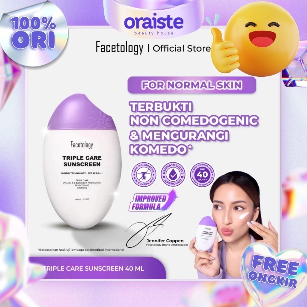 [ TWIN PACK ]FACETOLOGY TRIPLECARE SUNSCREEN SPF 40 PA+++ | 40ML | MERAH JINGGA OFFICIAL