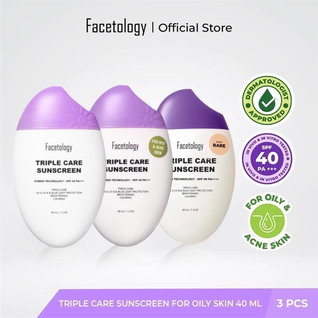FACETOLOGY TRIPLECARE SUNSCREEN SPF 40 PA+++ 40ML HYBRID FORMULATION (EMBOS MATAHARI)