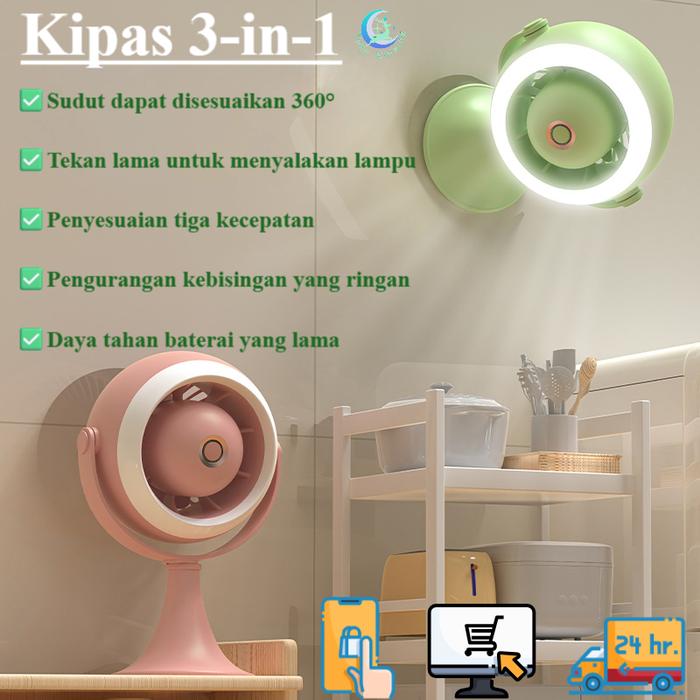 【BISA DINDING & SWING】MENDUKUNG KIPAS ANGIN PORTABLE CAS TIDAK BERISIK PUTAR 360° KIPAS ANGIN MINI MEJA LISTRIK 3 KECEPATAN USB LAMPU LED - PINK