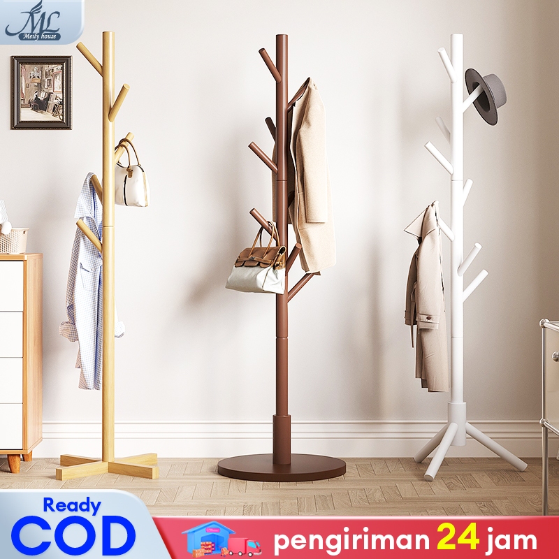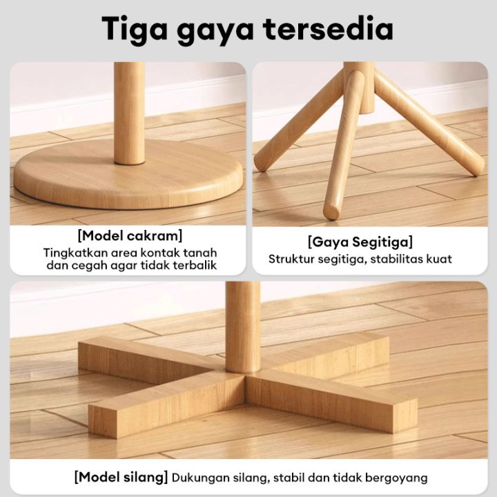 Gantungan Baju Berdiri Topi Multifungsi Rak mantel Stand Gantungan Kayu Simple Installation