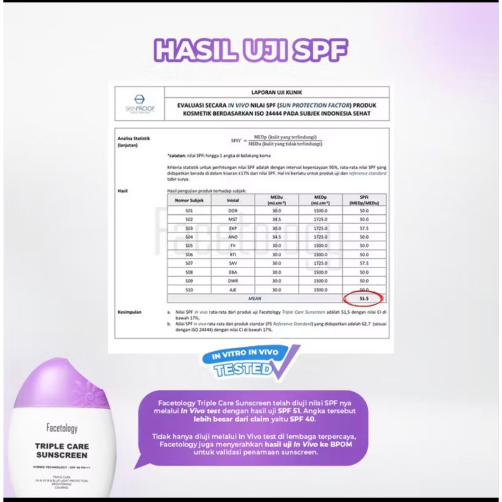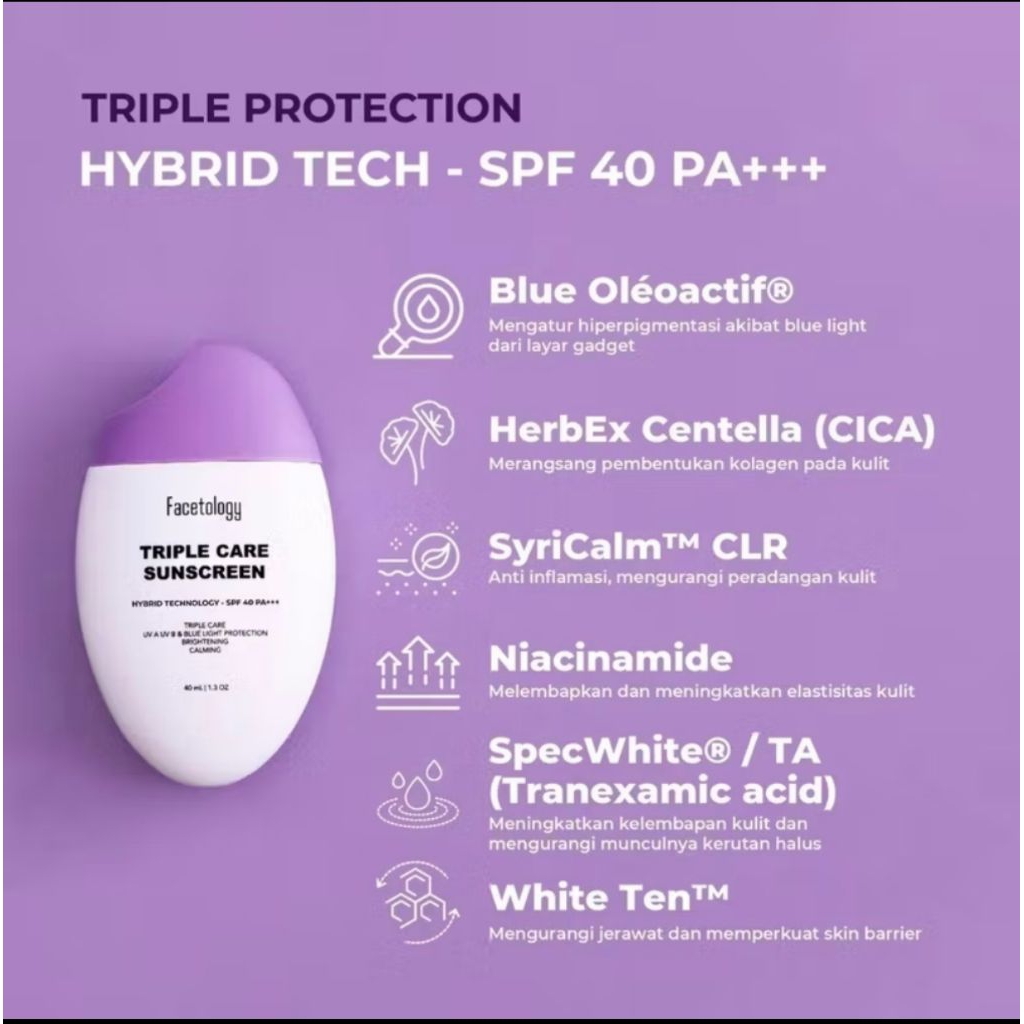 SUNSCREEN FACE TOLOGY-TRIPLE CARE SUNSCREEN HYBRID PROTECTION SPF 40PA+++ I