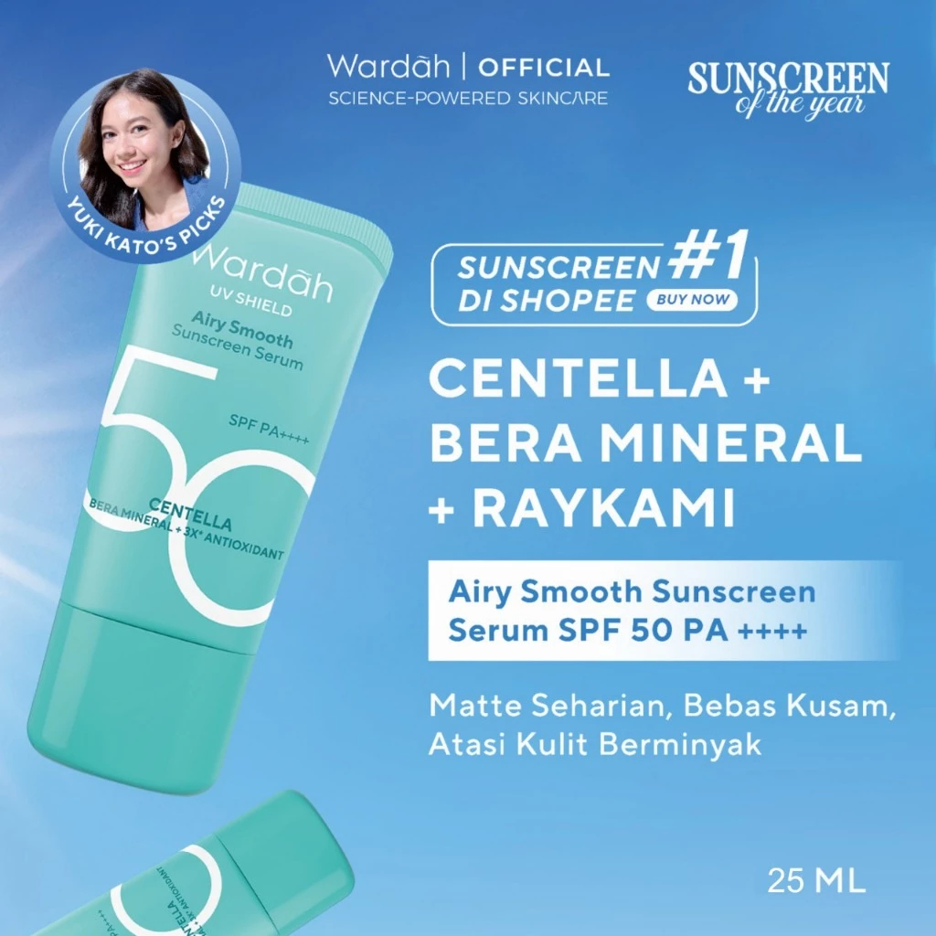 WARDAH UV SHIELD AIRY SMOOTH SUNSCREEN SERUM SPF 50 PA++++ SUNSCREEN MATTE DAN RINGAN-SKINCARE