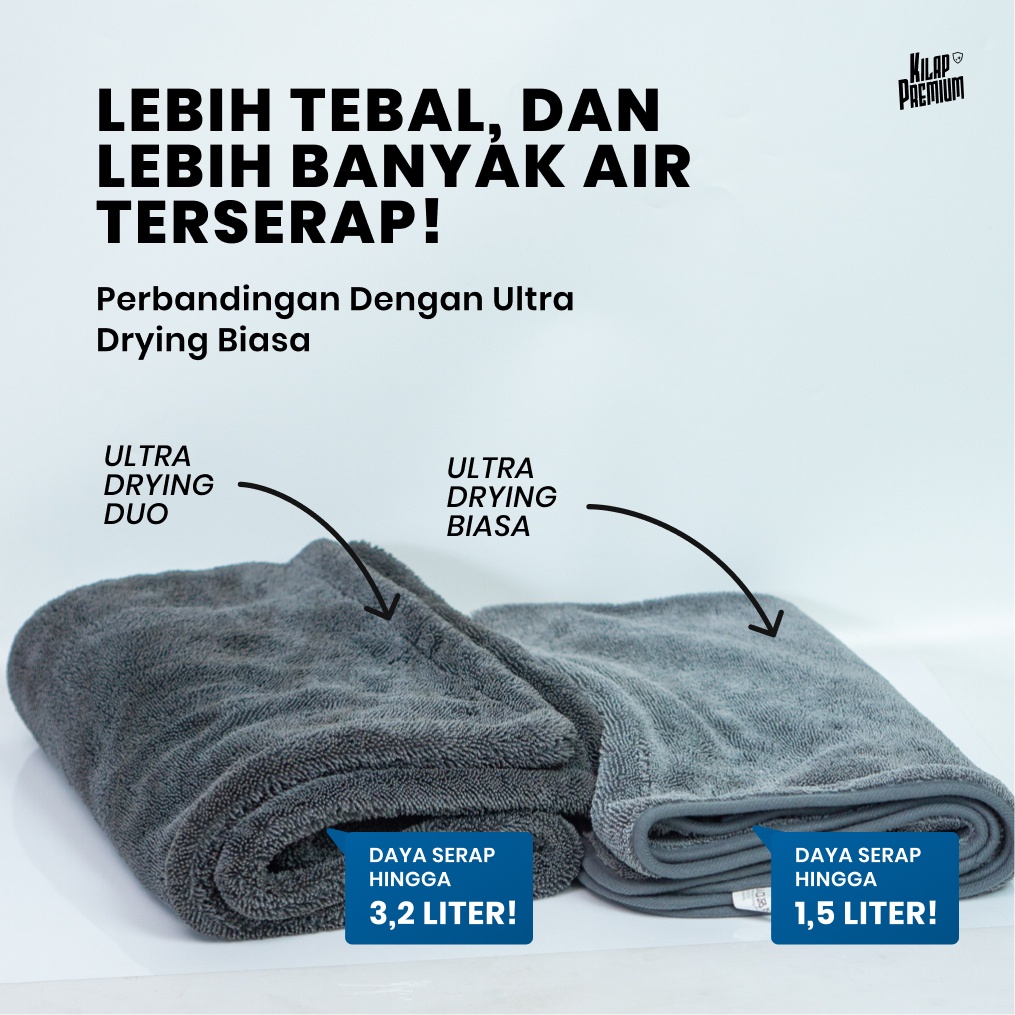 Ultra Drying Duo | Kilap Premium - Kain Lap Microfiber Jumbo Premium, Lap Pengering Cuci Mobil Sekali Tarik, Drying Towel Microfiber Mobil Motor