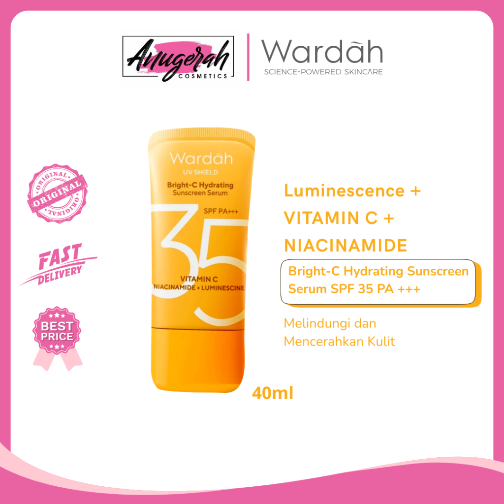 WARDAH UV SHIELD BRIGHT C HYDRATING SUNSCREEN SERUM SPF 35 PA+++ 40 ML - PERLINDUNGAN SINAR MATAHARI