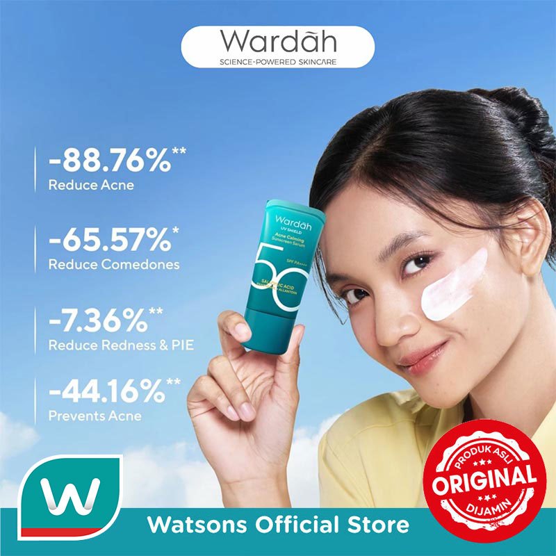 WARDAH UV SHIELD ACNE CALMING SUNSCREEN SERUM SPF 50 PA++++ 45ML - SUNSCREEN WAJAH - MEREDAKAN JERAWAT - RINGAN - MUDAH MERESAP - CALMING AND REPAIR - BOOSTING SUNSCREEN