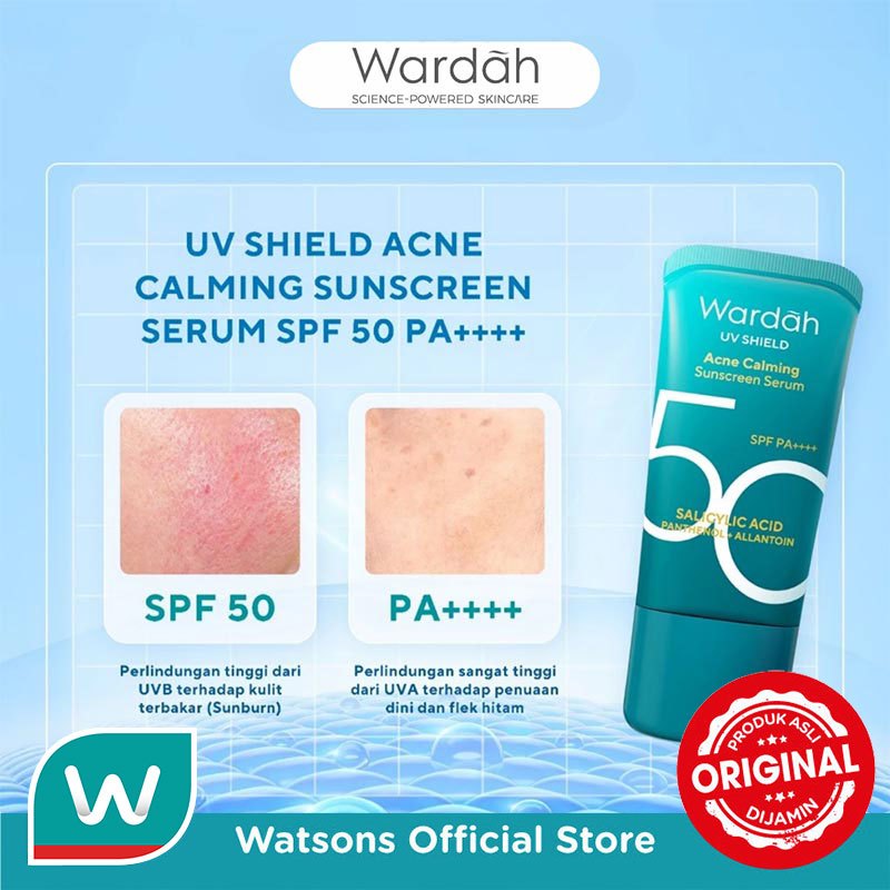 WARDAH UV SHIELD ACNE CALMING SUNSCREEN SERUM SPF 50 PA++++ 45ML - SUNSCREEN WAJAH - MEREDAKAN JERAWAT - RINGAN - MUDAH MERESAP - CALMING AND REPAIR - BOOSTING SUNSCREEN