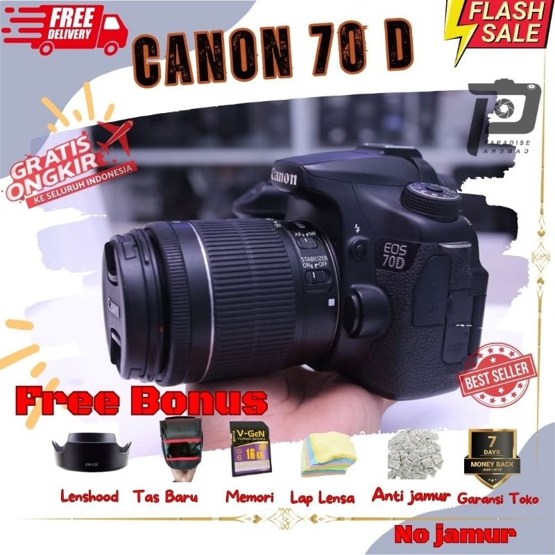Kamera Canon 70D + Kit Stm 18-55 Mm Mulus Dan Fullbonus