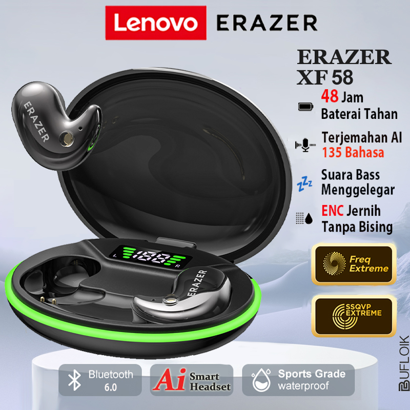 Lenovo ERAZER XF58 TWS True Wireless Headset Headphone Tidur Mini In-Ear Translation Earbuds Noise-canceling Gaming Earphones