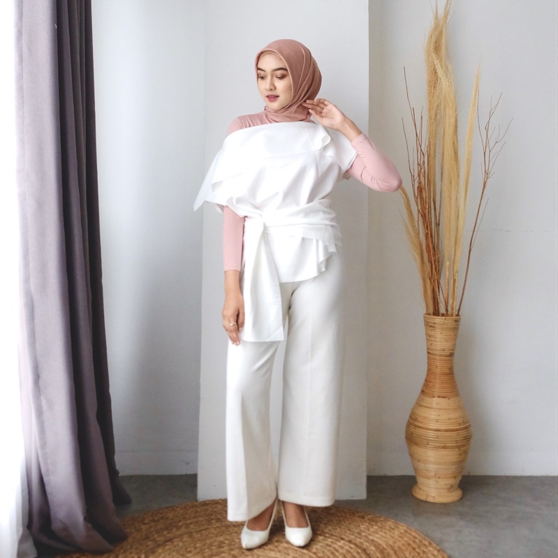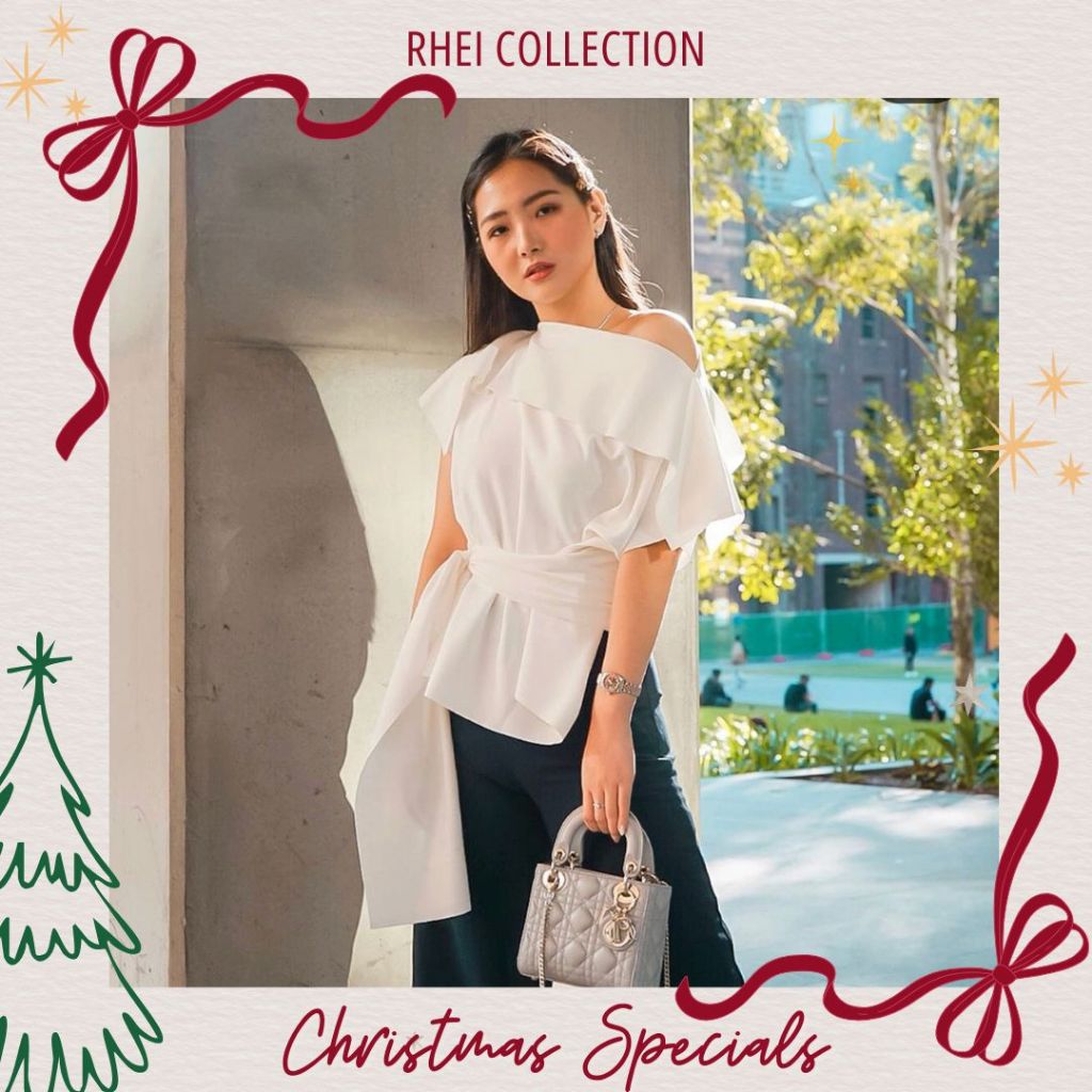 Rhei Collection - Atasan Wanita Baju Natal Christmas Putih Scuba Sabrina Blouse Cewek Missy Top White