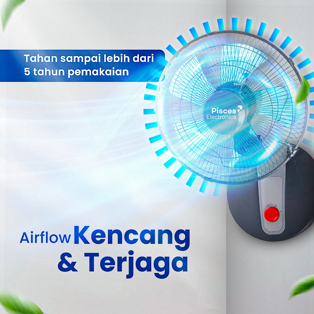 Kipas Angin Duduk / Desk Fan 2in1 (Meja & Dinding) 12" Pisces 1290 PRO dengan Teknologi Bearing Terjangkau