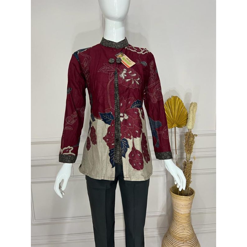 Blouse batik lengan panjang berkancing/ baju kerja lengan panjang